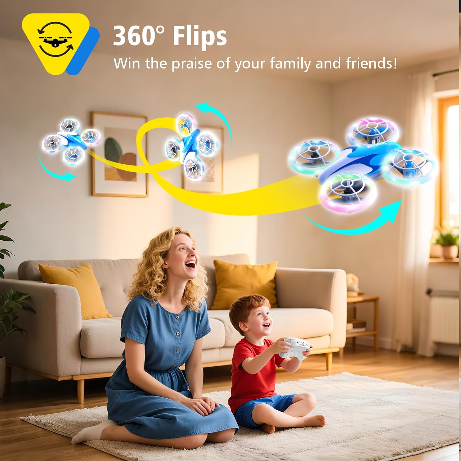 053Drone for Kids,Colourful LED RC Drone, Drone kids for Beginners,3D Flips,Altitude Hold, Propeller Full Protect,Mini drone Toy With 3 Batteries, Great Gift Toy for Boys and Girls