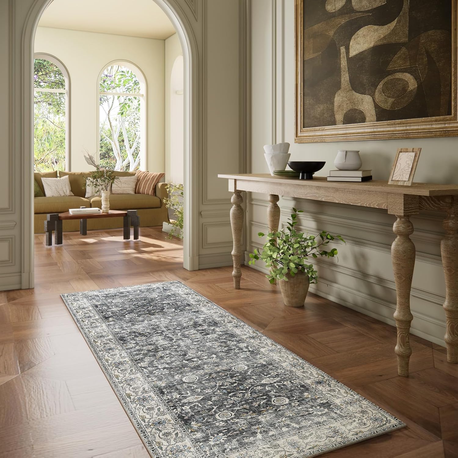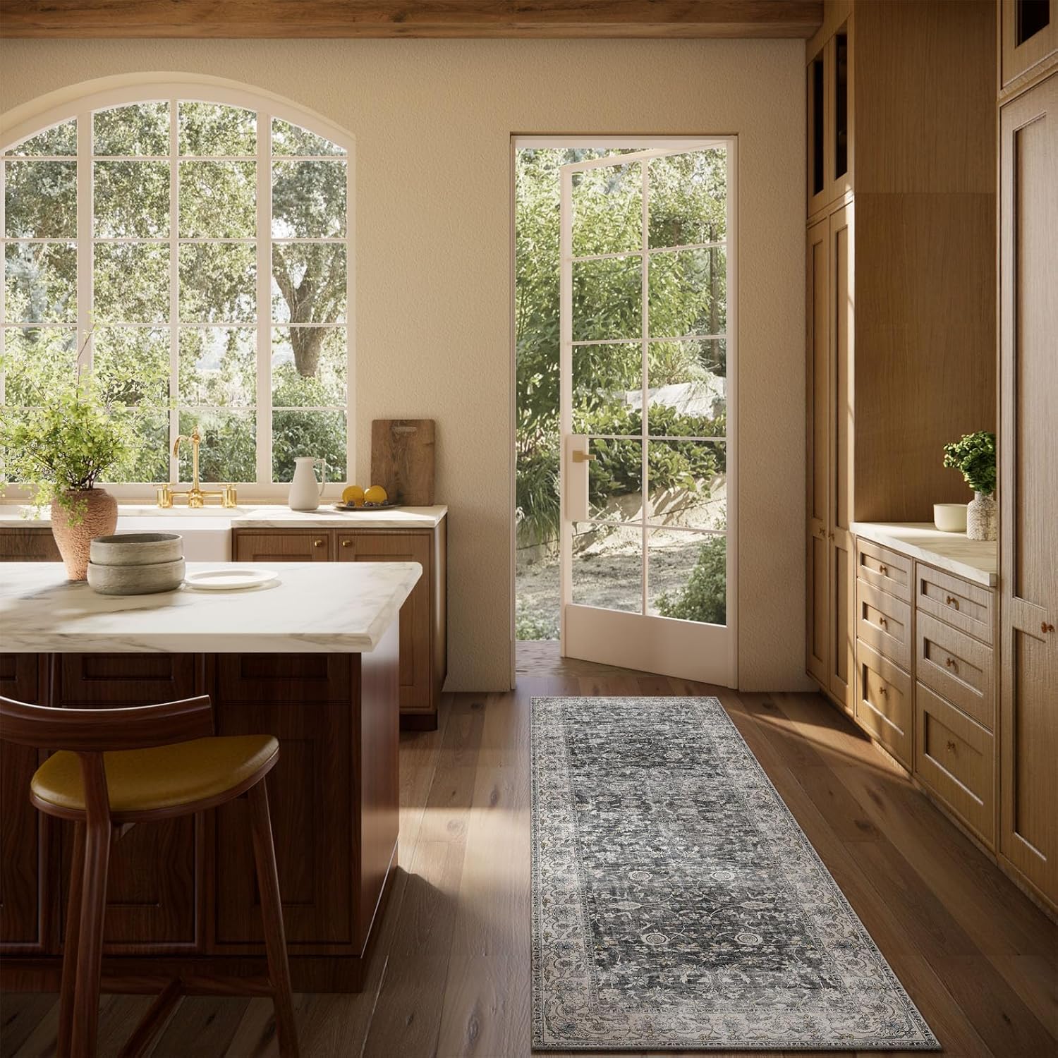 Runner Rug Washable Kitchen Runner: 2'x 6' Hallway Runner Rugs Stain Resistant Non Slip Low Pile Soft Boho Carpet Runners for Hallways Bedroom Entryway Indoor Beside Bathroom Laundry Room
