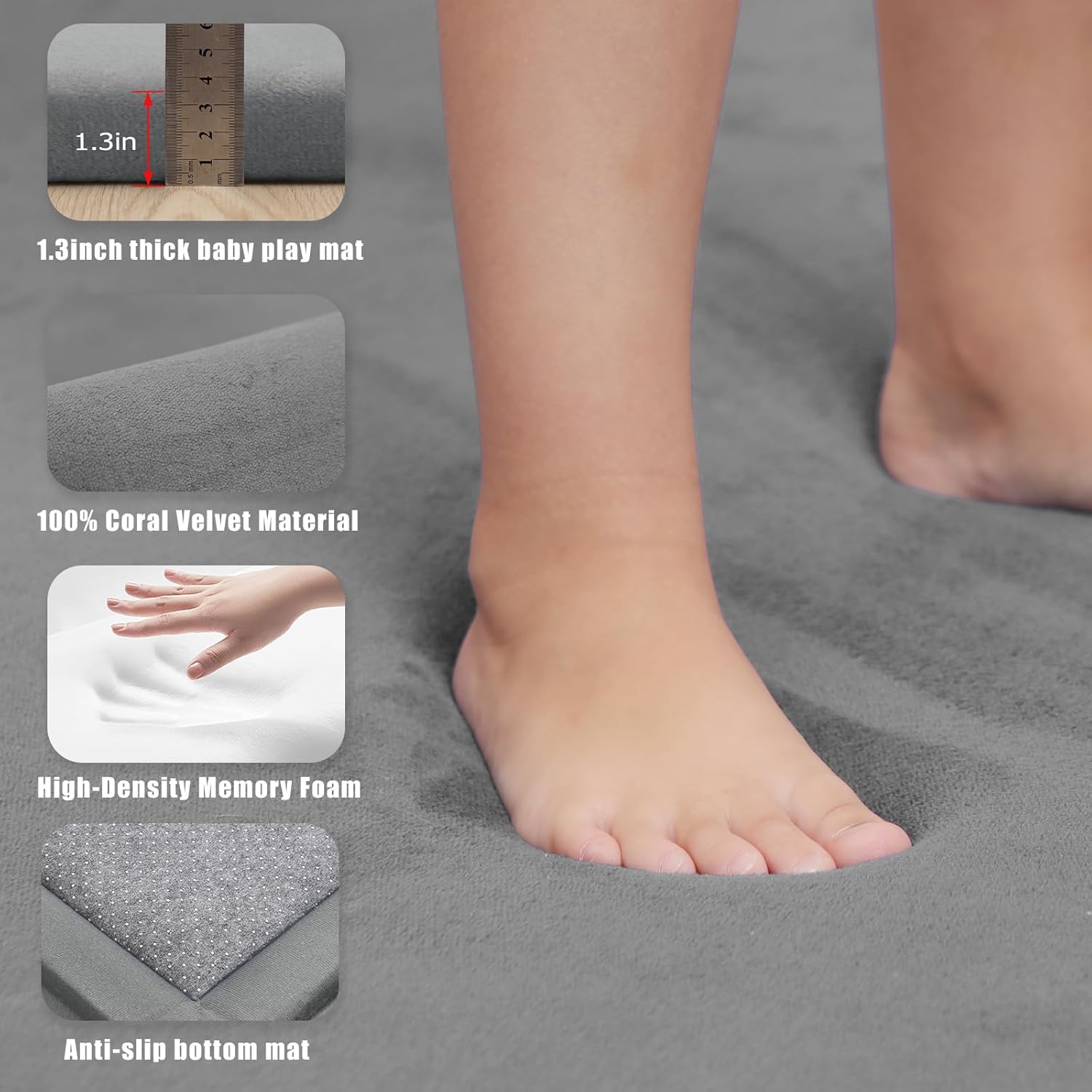 Thick Play Mat for Baby, 50 X 50x 1.3" Memory Foam Playpen Mat,Ultra Soft Tummy Time Mat with Non-Slip Backing, Baby Crawling Mat Child Nursery Rug for Infant, Toddlers, Kids (Light Gray)