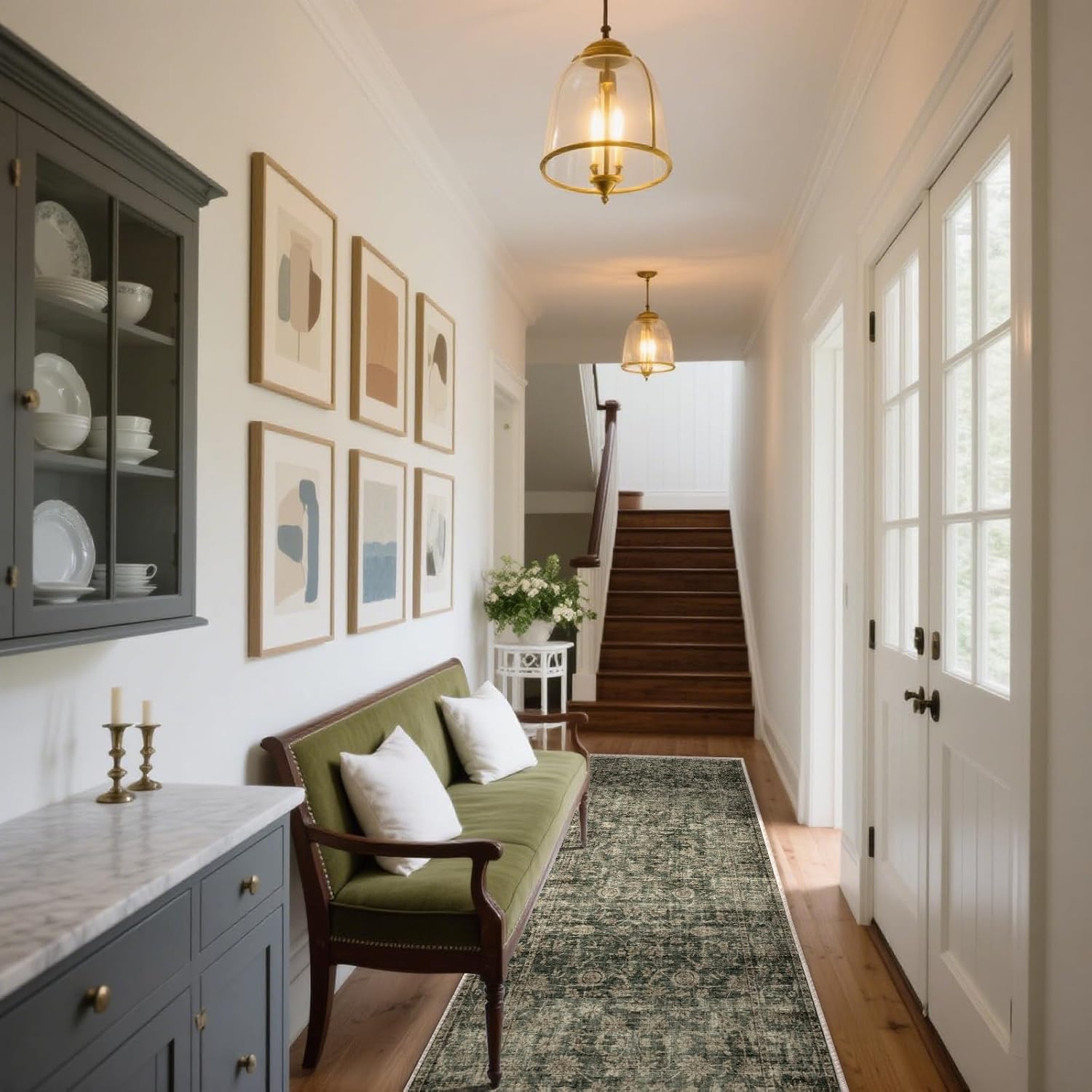 Washable Kitchen Rug Runners for Hallways: 2'x10' Entryway Rug with Non Slip Backing Low Pile Soft Indoor Long Floor Carpet Runners for Hallways Kitchen Laundry Room Bathroom Bedroom