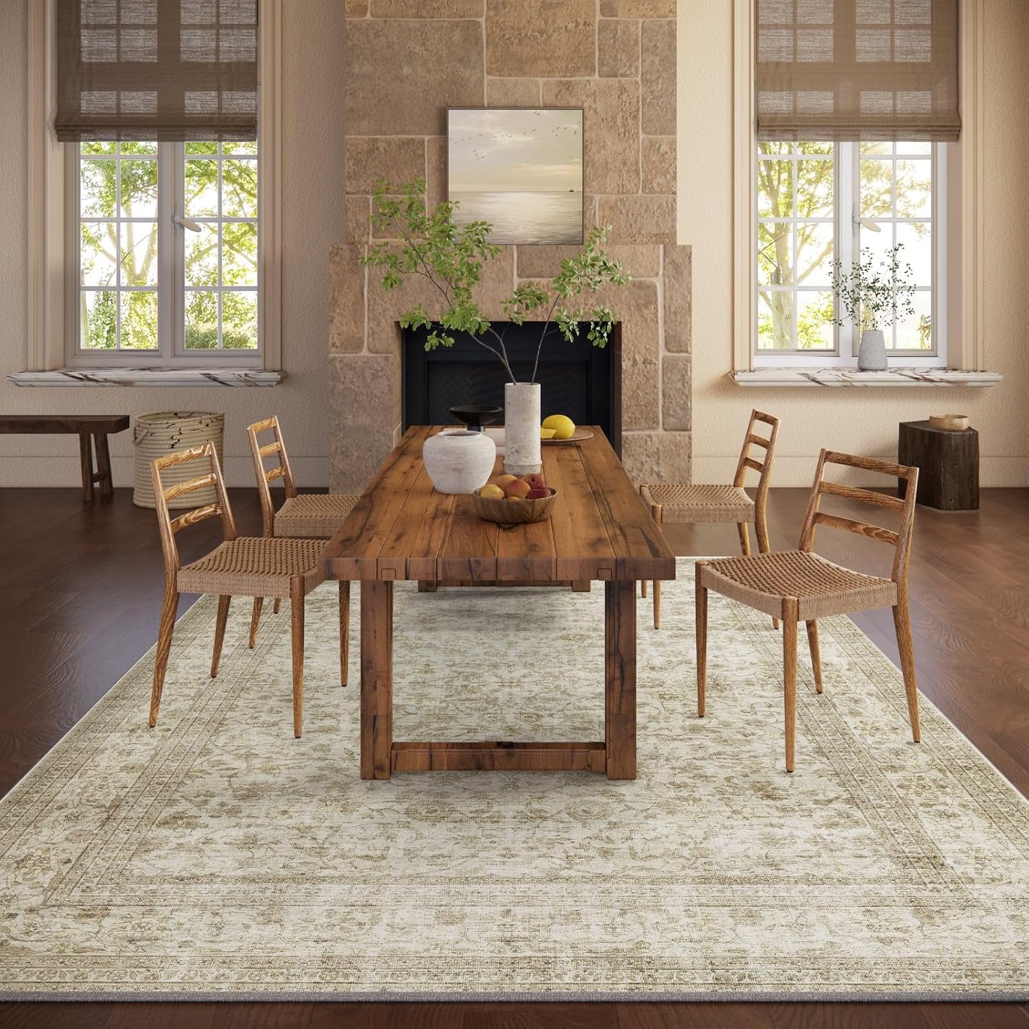 Machine Washable Rugs for Living Room: 5x7 Area Rugs for Bedroom Boho Vintage Rugs Stain Resistant Non Slip Low Pile Soft Lightweight Carpet for Kitchen Dining Room Farmhouse Nursery Kids Room