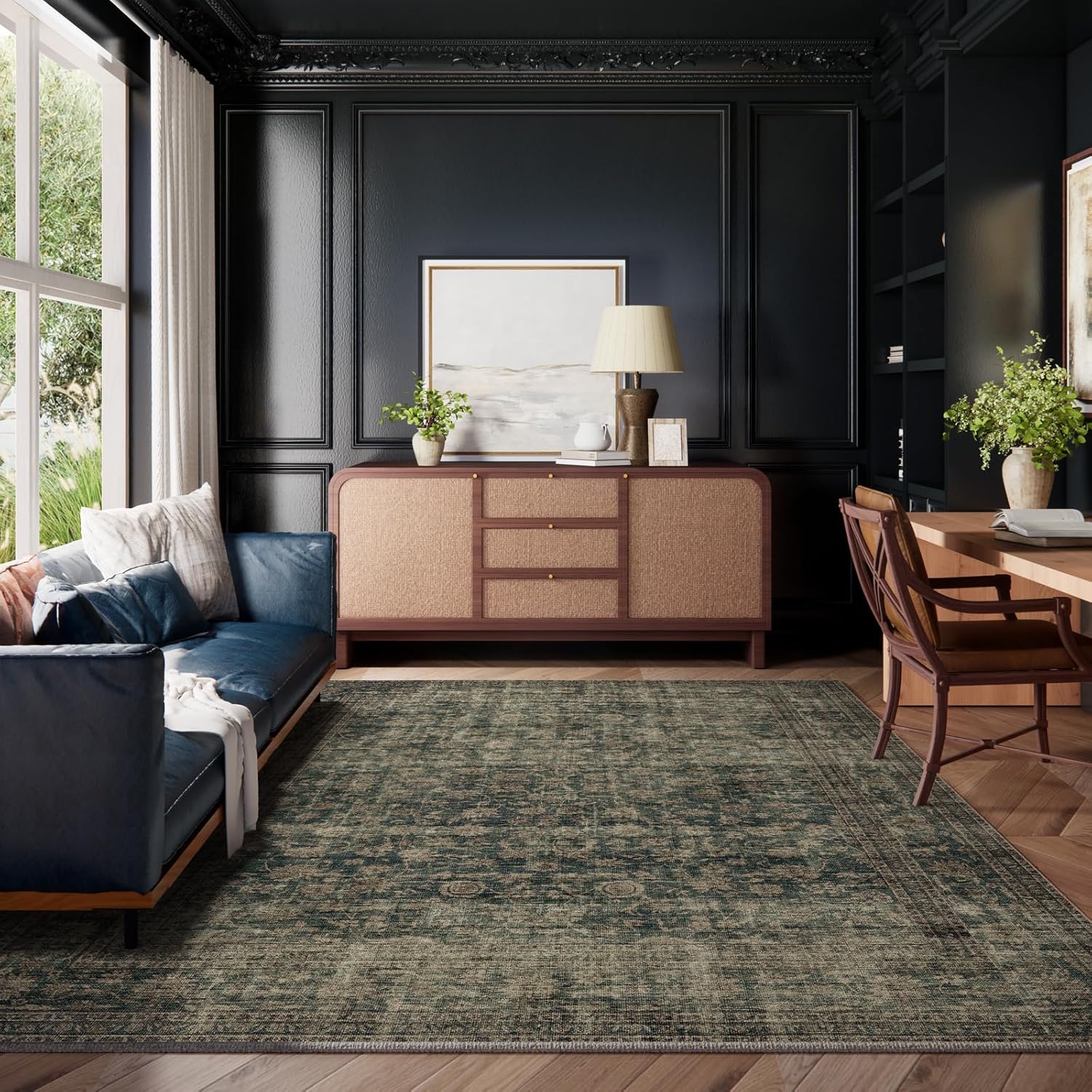 Washable Living Room Area Rug: 6x9 Area Rugs for Bedroom Vintage Stain Resistant Non Slip Low Pile Lightweight Boho Carpet for Kitchen Dining Room Farmhouse Kids Room Nursery