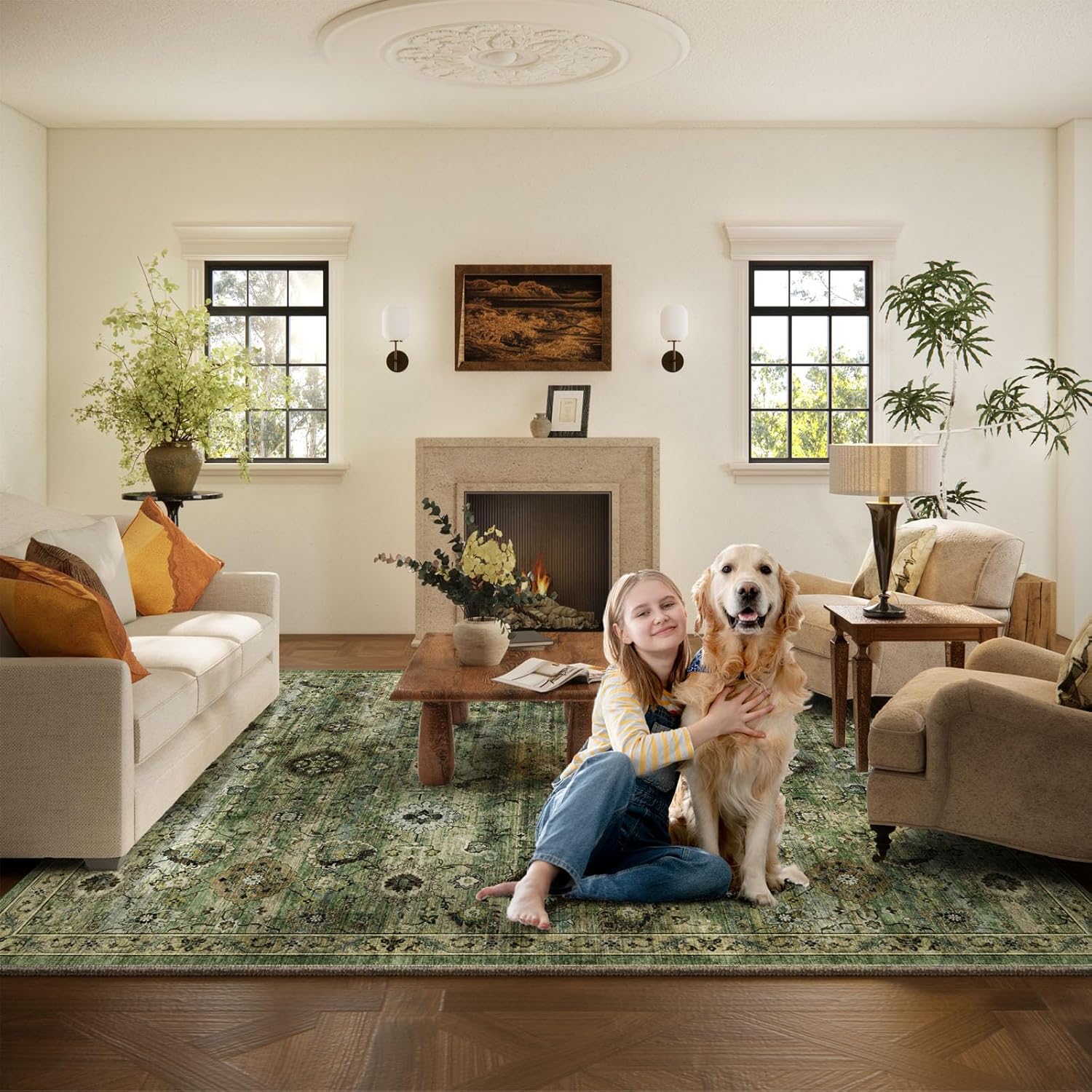 - WASHABLE RUG: This is a fully machine washable area rug for extra convenience. machine wash this living room rug in cold water alone for a deeper clean. regular vacuuming and spot cleaning will keep the rug looking fresh while the colors stay vibrant and won't fade, perfect for busy households with kids and pets