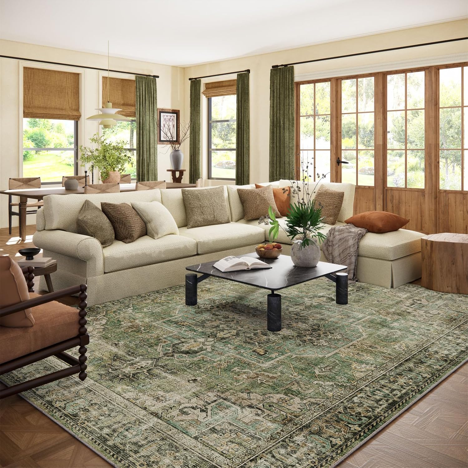 8x10 Area Rugs for Living Room: Washable Bedroom Rug Boho Vintage Rugs Stain Resistant Non Slip Low Pile Soft Lightweight Carpet for Kitchen Dining Room Farmhouse Nursery Kids Room
