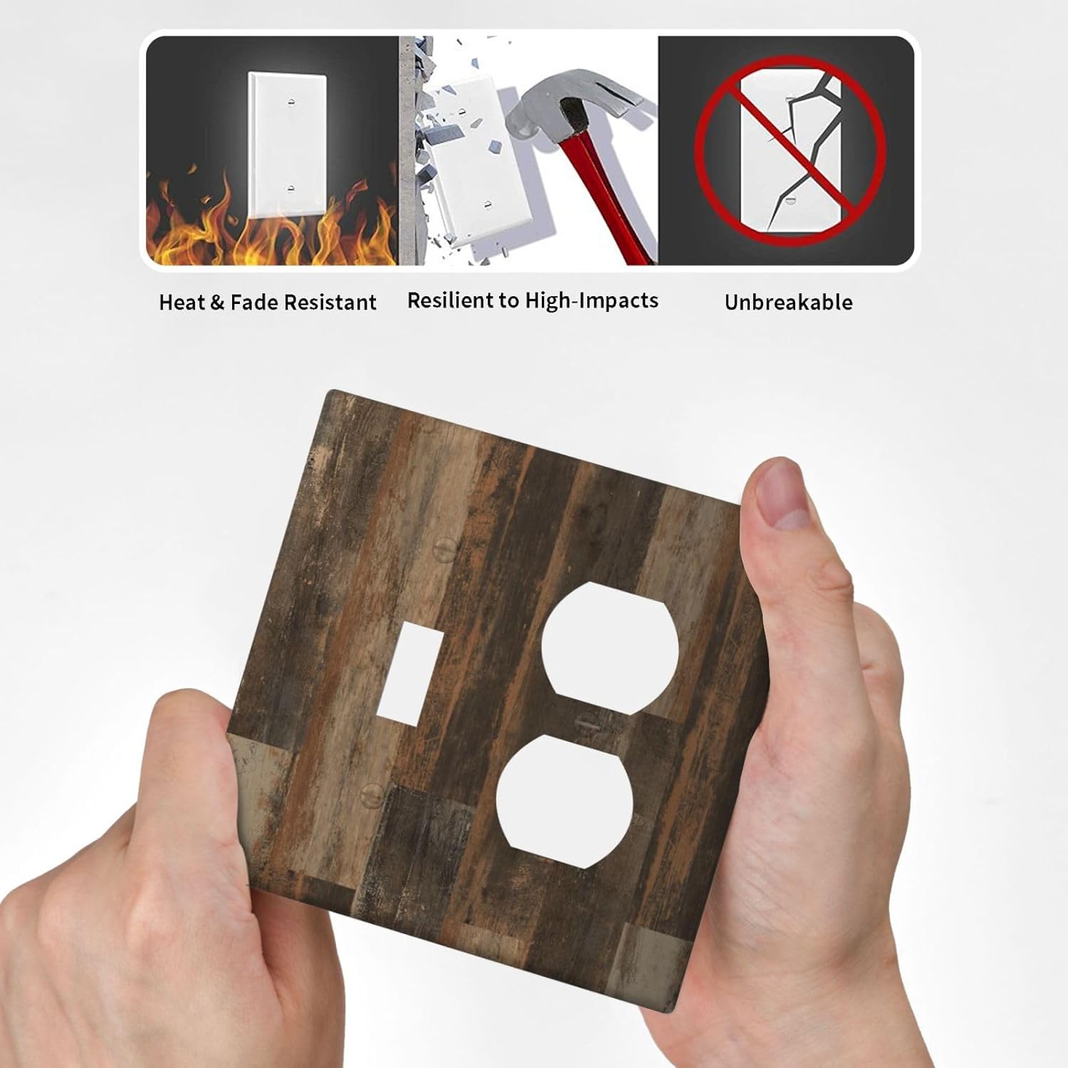 Rustic Brown Wood Grain Dark Oak Wallplates 1 Toggle 1 Duplex Switch Plate Electrical GFCI Faceplate Decorative Light Switch Covers for Farmhouse Home Decor
