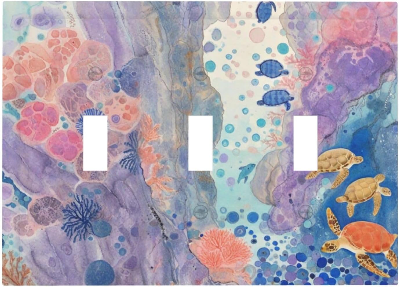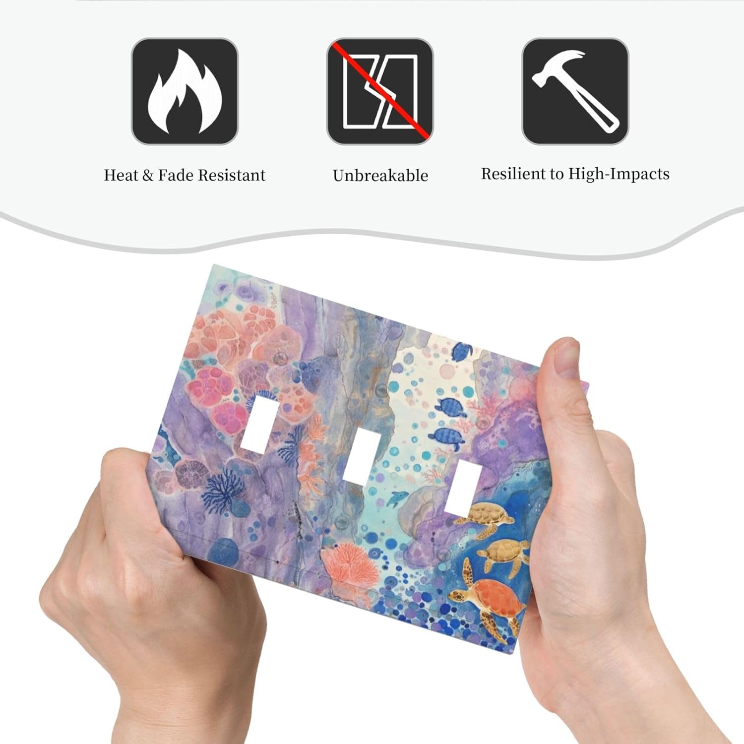 Turtle Coral Fish Watercolor Colorful Underwater World Decorative Switch Plates 3 Gang Wall Plate Triple Toggle Light Switch Cover Faceplate Electrical Wall Panels for Kids Room Home Decor