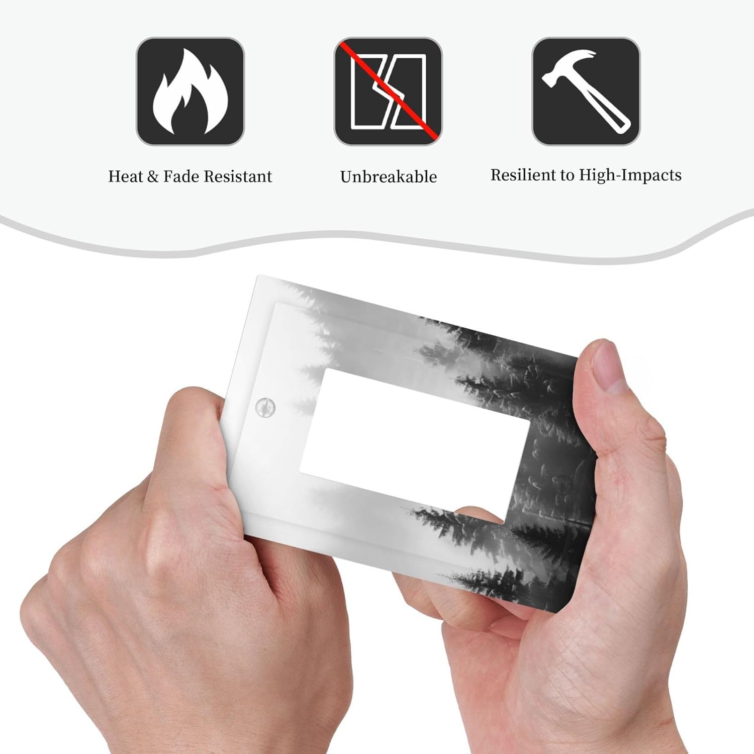 Foggy Forest Natural Scenery Retro Tree Pine Decorative Outlet Covers 1 Gang Single Rocker Light Switch Cover Plate Wall Plates GFCI Faceplate for Bed Room Living Room Decor