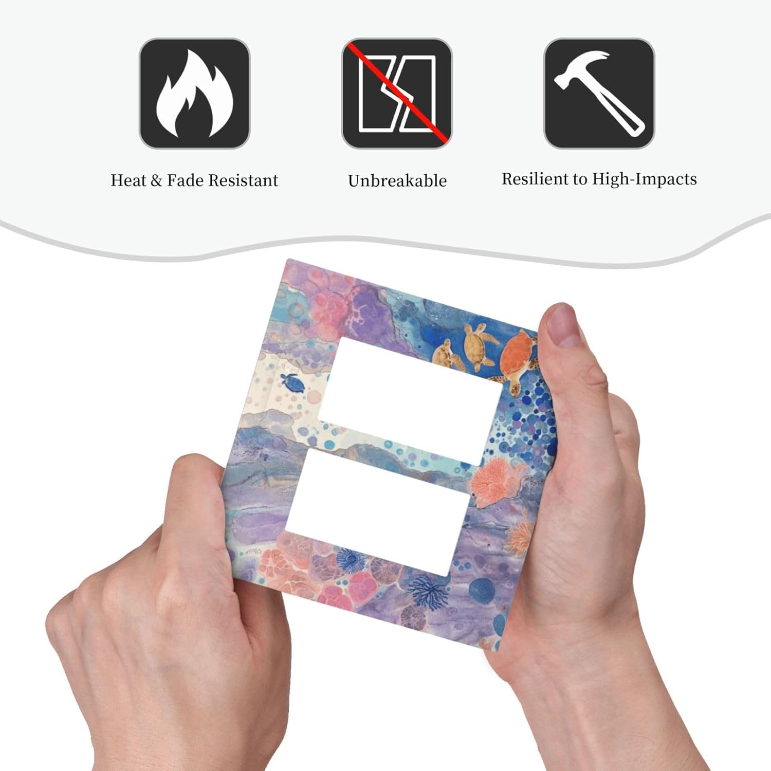 Turtle Coral Fish Watercolor Colorful Underwater World Decorative Outlet Covers 2 Gang Double GFCI Rocker Electrical Wall Panels Light Switch Cover Plate for Kids Room Home Decor