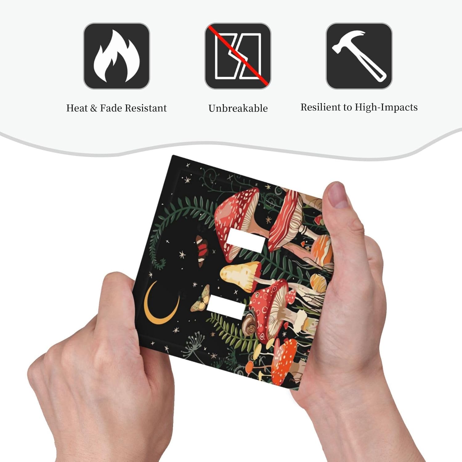 Moon Star Red Mushroom Forest Butterfly Green Plant Decorative Switch Plates 2 Gang Double Toggle Outlet Light Switch Cover Wall Plate Electrical Faceplate for Kids Room Home Decor