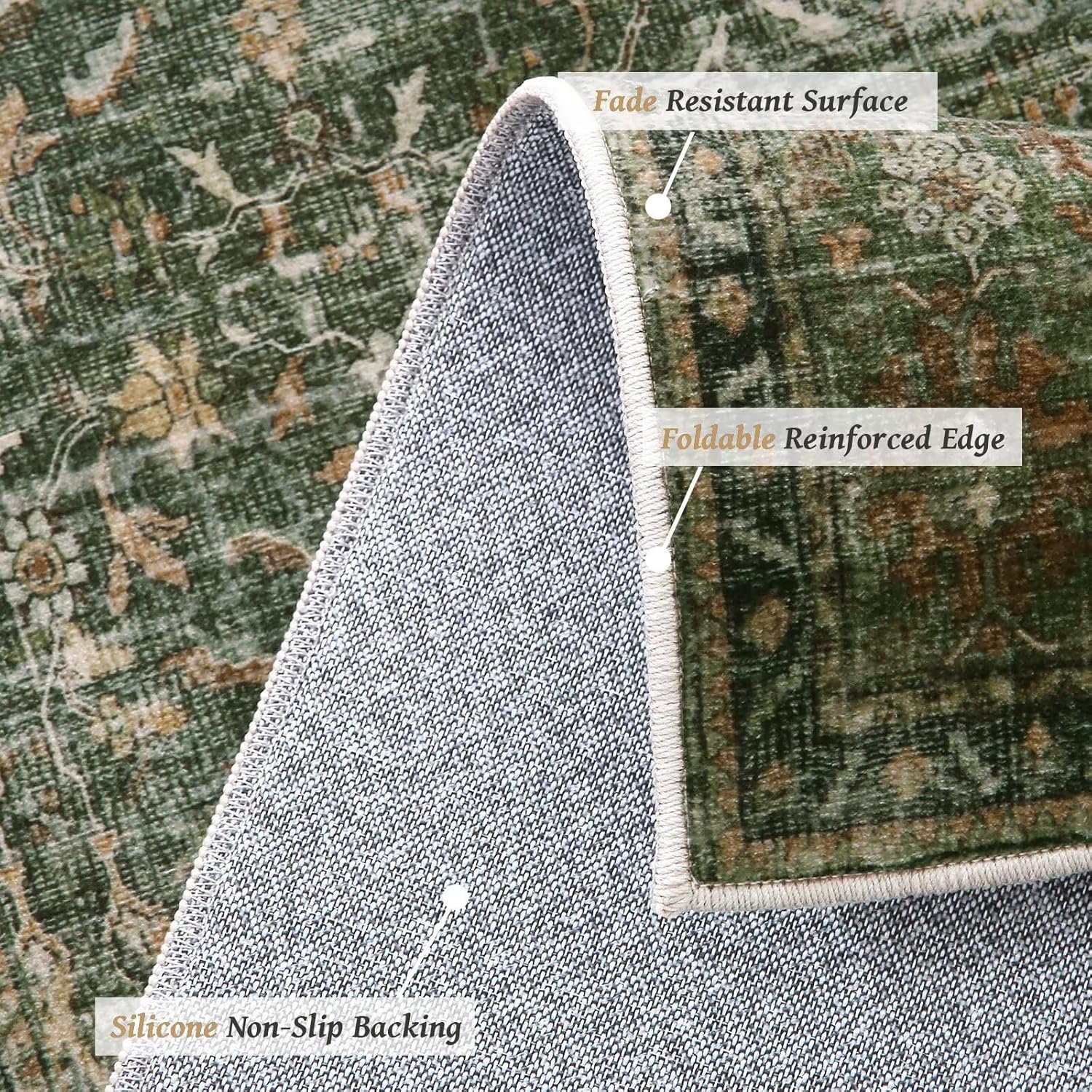 Washable 10x14 Area Rugs for Living Room, Boho Non-Slip Silicone Backing Rugs for Bedroom Dining Room Office, 0.3" Neutral Oriental Throw Carpet with 0.16" Cushioning Pad, Grass Green/Multi
