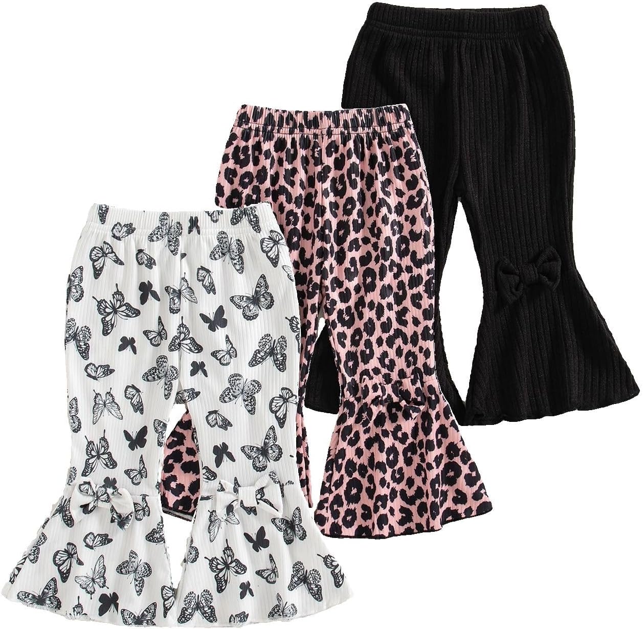 - Package includes: baby girl pants includes 3pc bell bottoms for toddler girls, black, White Gray winter pants