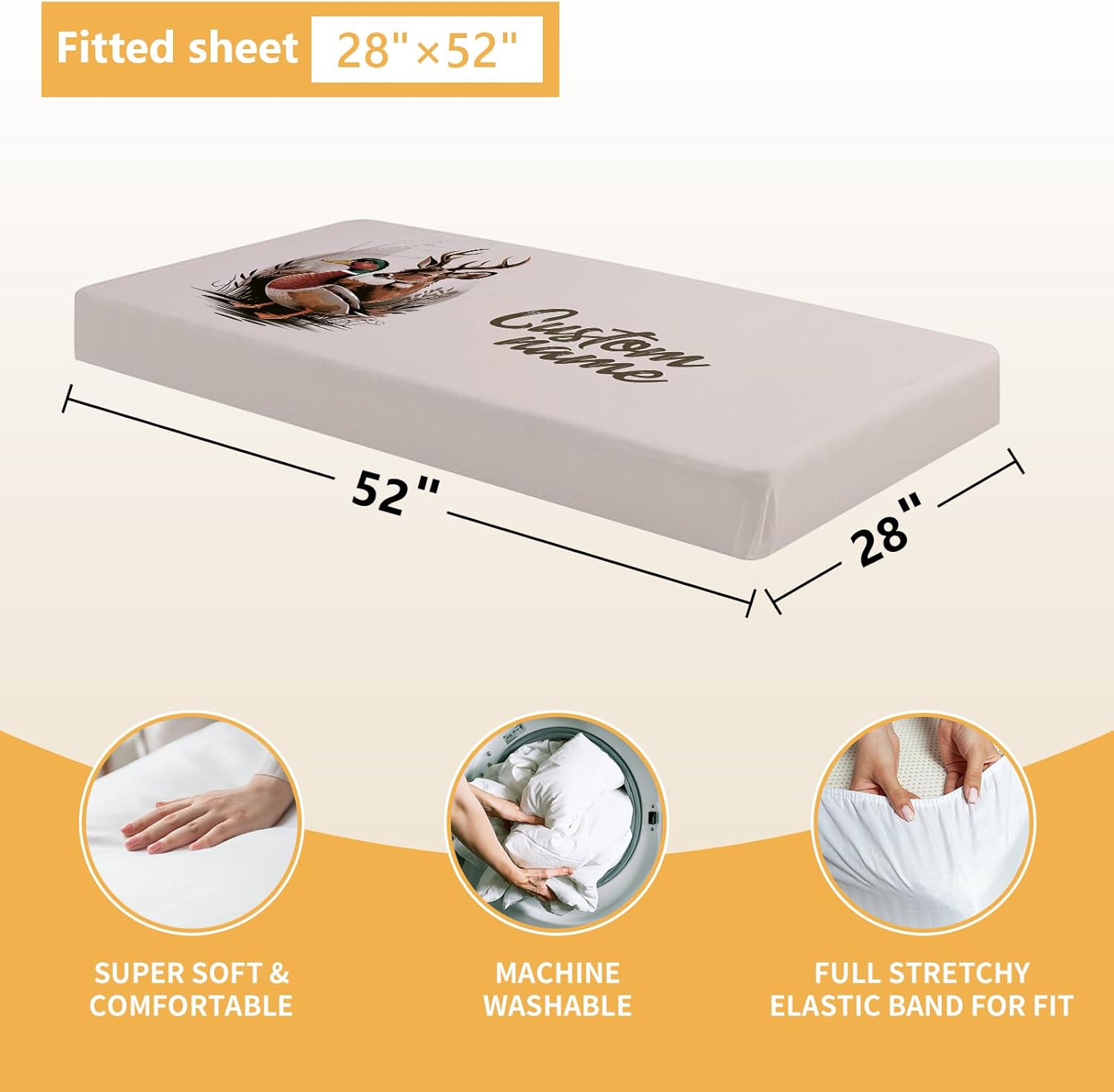 Personalized Crib Bedding Set, 5 Pcs Custom Name Nursery Bedding Set with Double Layer Blanket, Green Woodland Deer Baby Crib Set for Boys Girls, Customized Gifts for Toddlers Infants Babies