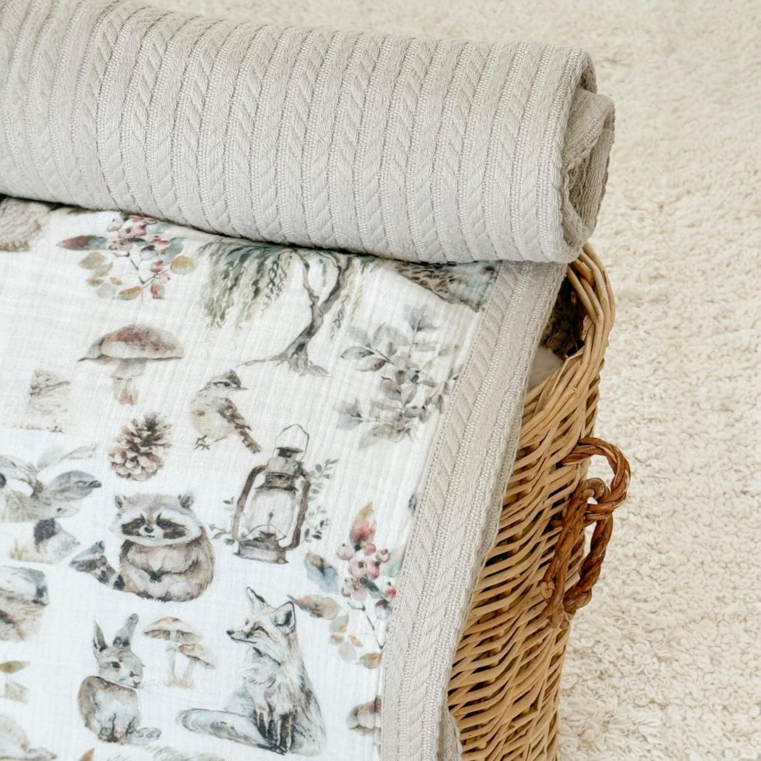 Personalized Baby Blanket with Name – Handmade 100% Organic Cotton Newborn Gift | Custom Knit Blanket for Boys, Girls, Kids & Baby Showers (Stone Beige/Critter Crew)