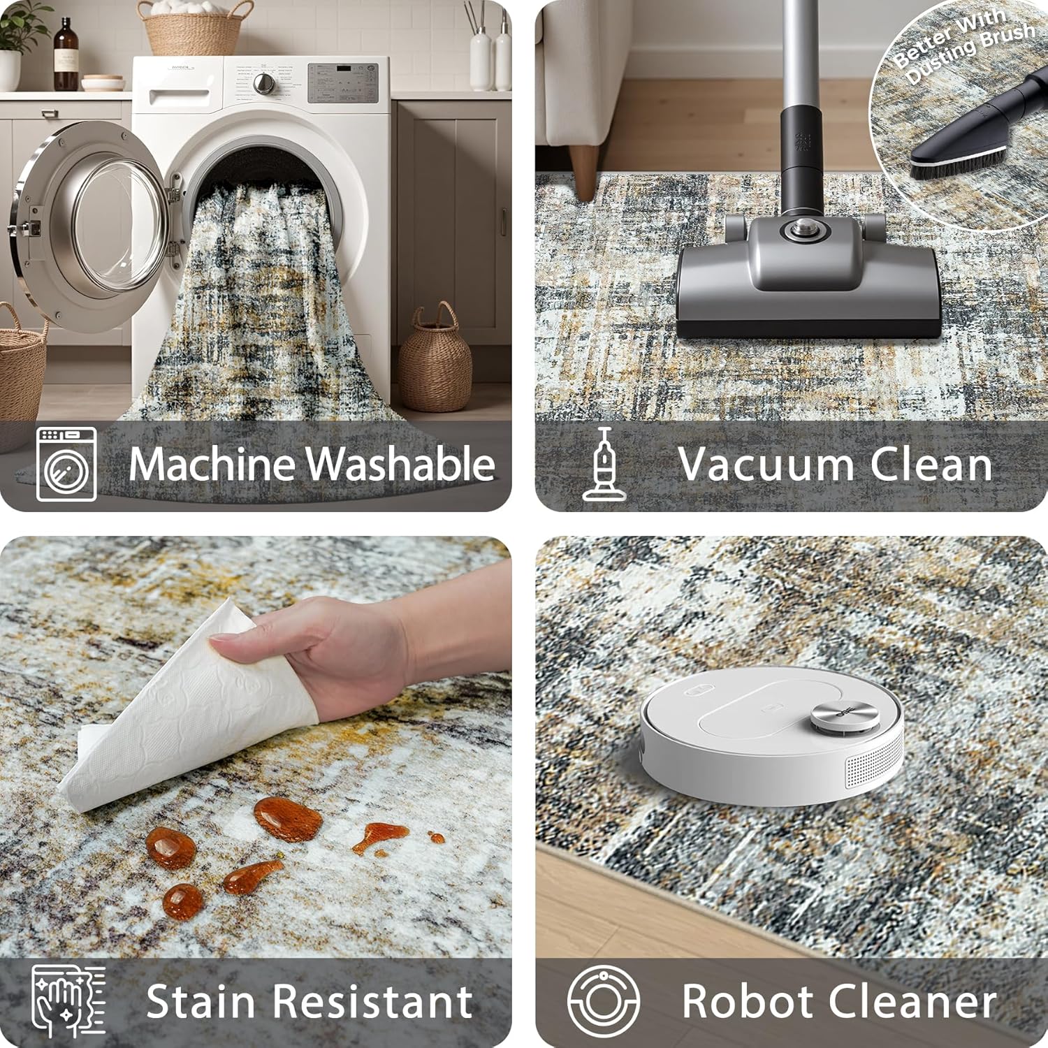 - Machine Washable& Easy To Maintain: The 5x7 rugs for living room are easy to maintain. It can be easily cleaned by vacuum on the low setting or by shaking off the dust directly outdoors. Machine washable features have been a practical and time-saving benefit, cleaning is a breeze, particularly for high-traffic areas or homes with children or pets. Please be advised not to use bleach as it may harm the fabric