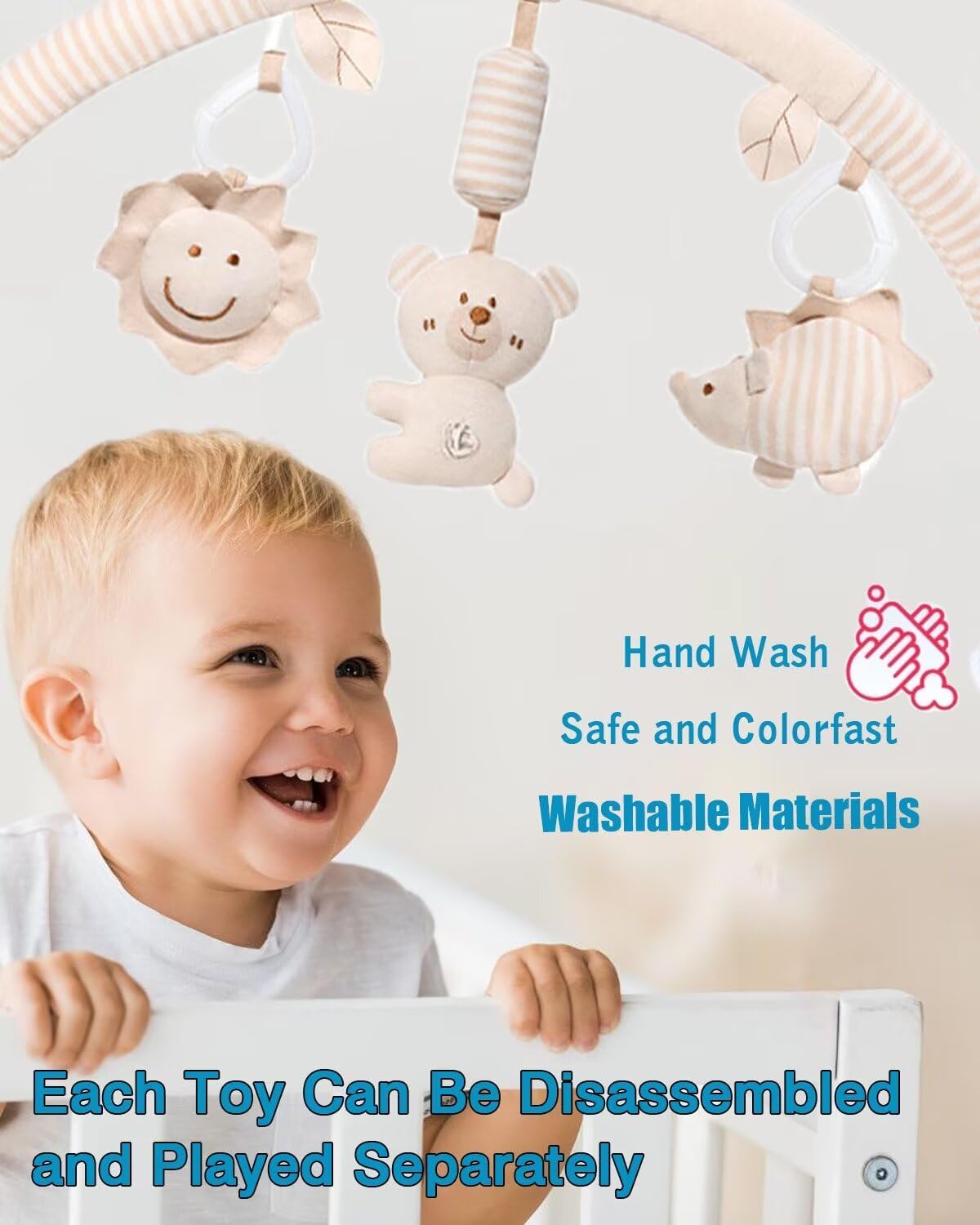 - Car seat toys,It is an early development toy.crib toys hanging made of washable materials.Each stroller toy can be detachable dsassembled and played separately.