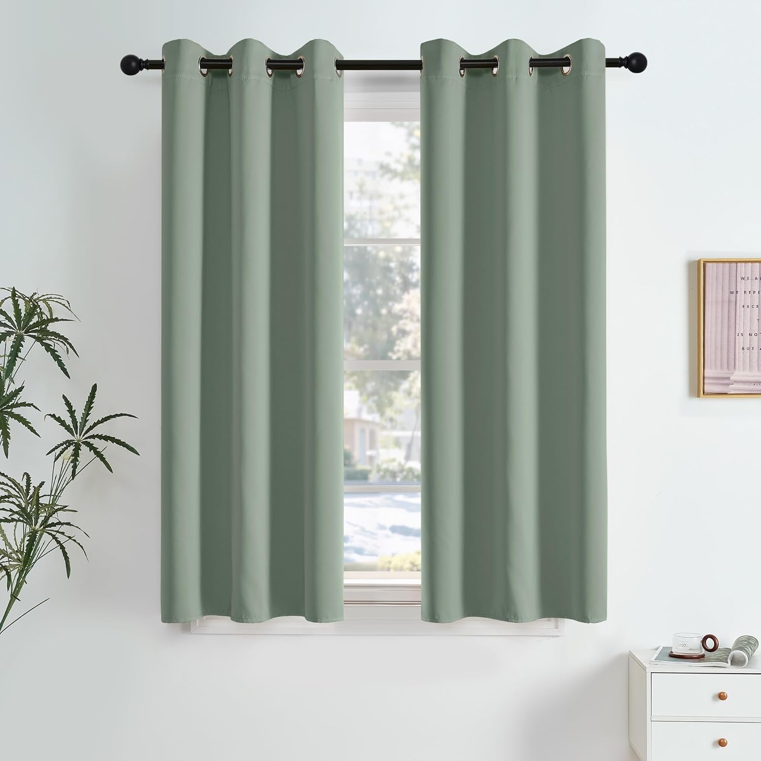 NICETOWN Sage Green Room Darkening Curtains 63 Inches Long 2 Panels for Living Room, Bedroom, Nursery Summer Thermal Insulated Blackout Drapes Grommet Noise Reducing Window Treatment, W40