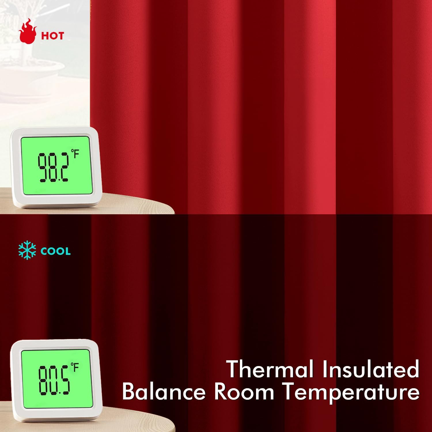 - Energy Saving: The thermal-insulated fabric keeps heat out in summer and retains warmth in winter, reducing your reliance on AC/heating and lowering energy costs by up to 15%. They are perfect for living rooms, bedrooms, patios, villas and offices