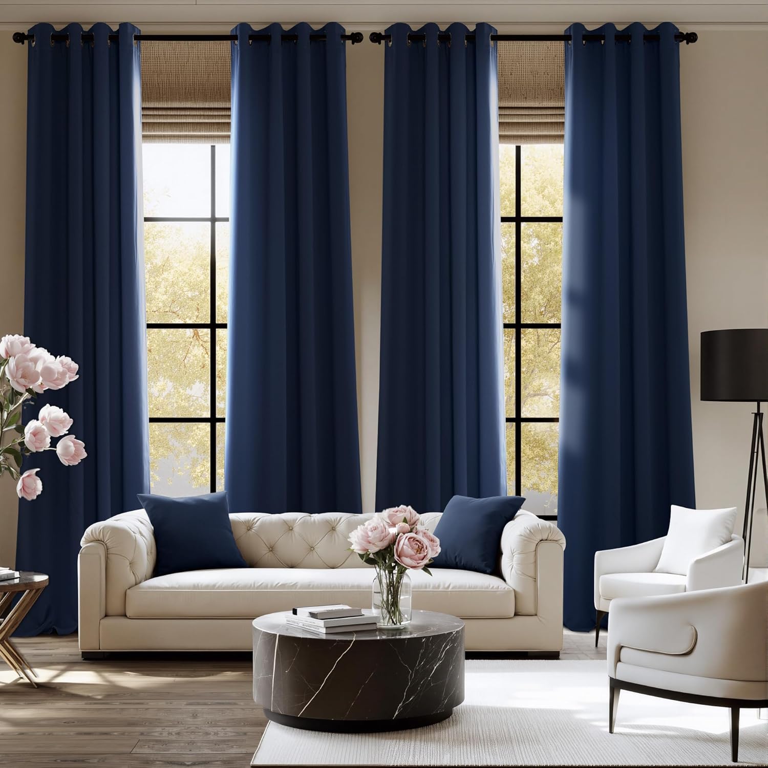 NICETOWN Navy Blue Blackout Curtains 108 inch Long, Thermal Insulated Grommet Privacy Energy Saving Shades for Bedroom, Living Room, Bathroom, Laundry, Patio, Closet, 2 Panels, W52 x L108