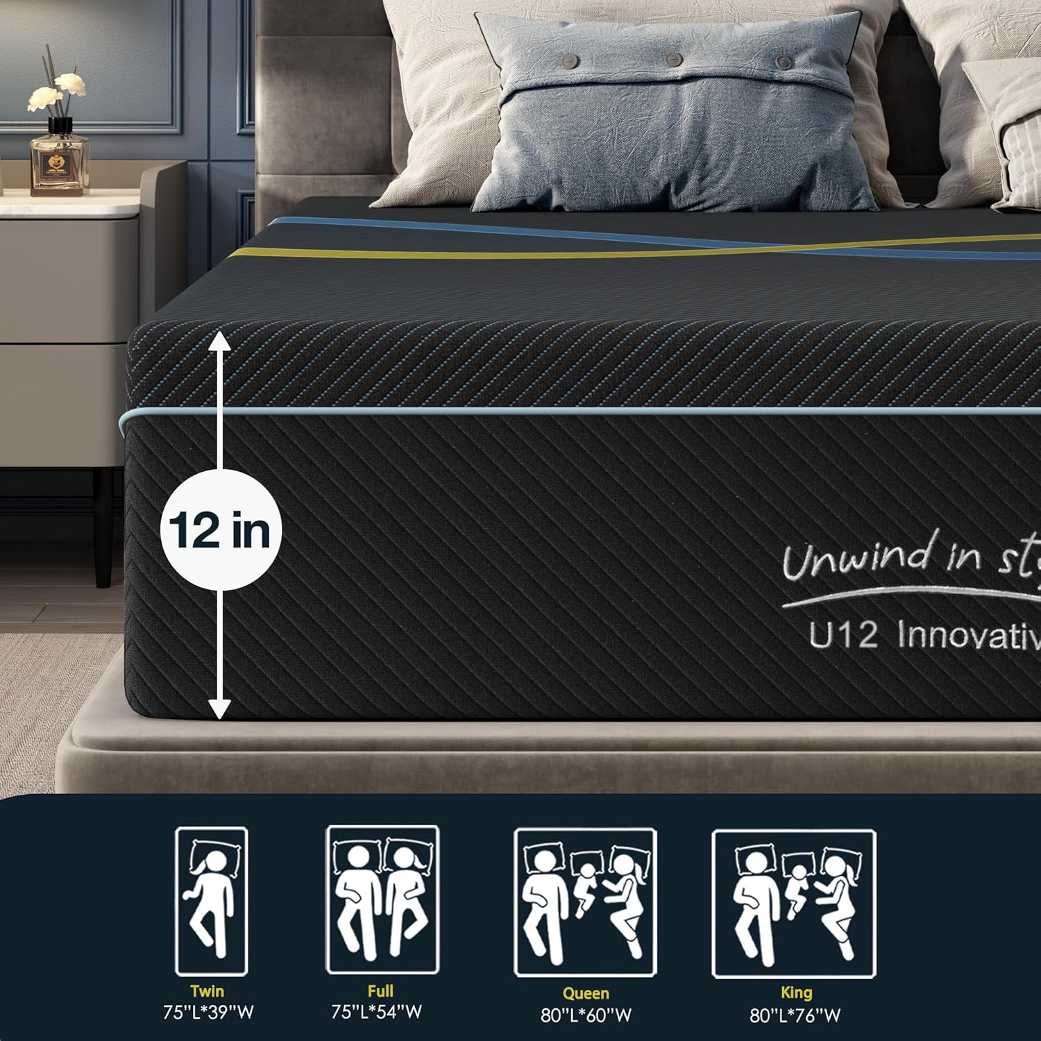 12 inch King Mattress Multi-Layer Memory Foam Mattress - Medium Firmness with Bamboo Charcoal & Green Tea Infusion
