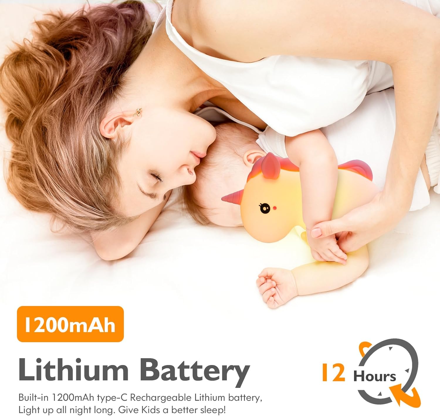 - ๐ฆ NICE COMPANION FOR LITTLE KIDS: The Unicorn night light a great companion for kids.If children have difficulty sleeping due to fear of the dark, the baby night light + Unicorn night lamp will be his "best companion". With a good companion, kids will no longer be afraid and gradually overcome their phobia of the dark and will be able to sleep independently again in the future, which will be a very rewarding thing for kids. Ideal as a bedside kids lamp for bedrooms or a girl's room decor. Popular for Xmas gift, Christmas gift, Thanksgving day, birthday, daily reward and New Year