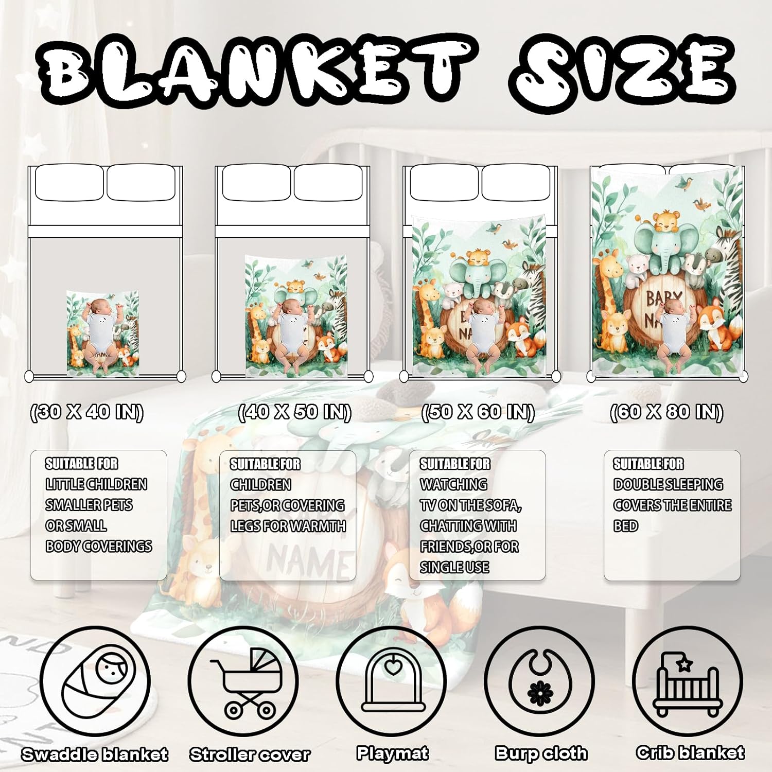 - Multiple Sizes for Every Stage of Babyhood -- From cribs to car seats, choose the perfect size: 30×40" , 40×50" , 50×60", or 60×80". Whether used at home, during naps, or on the go, our baby blankets for boys and girls offer comfort wherever they’re needed. It’s versatile, functional, and fits into every parenting routine or nursery setup.