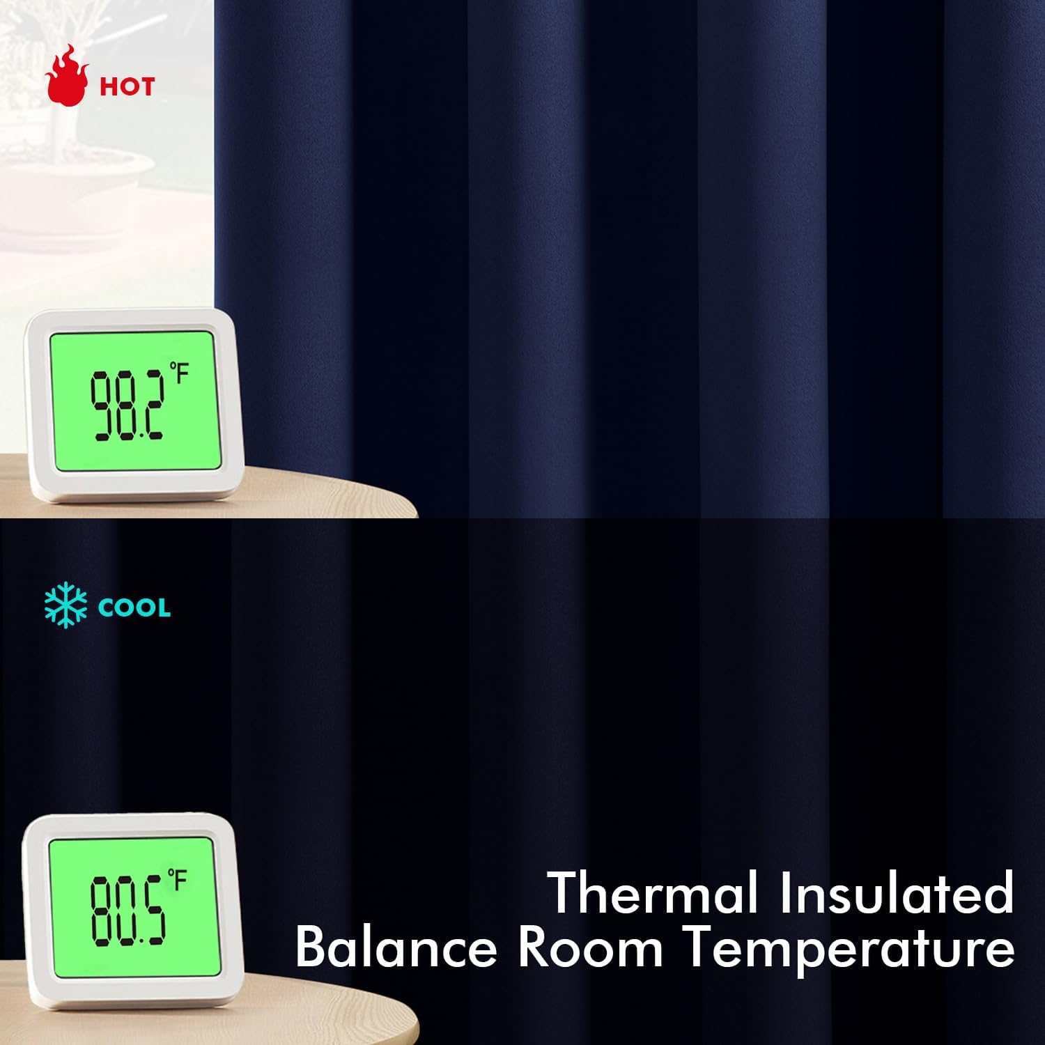 MIULEE Navy Blue Blackout Curtains - Bedroom Window Treatment Curtains Thermal Insulated Room Darkening Drapes for Living Room Kitchen Grommet Top Light Blocking Drapery, 40 x 48 Inches Long, 2 Panels