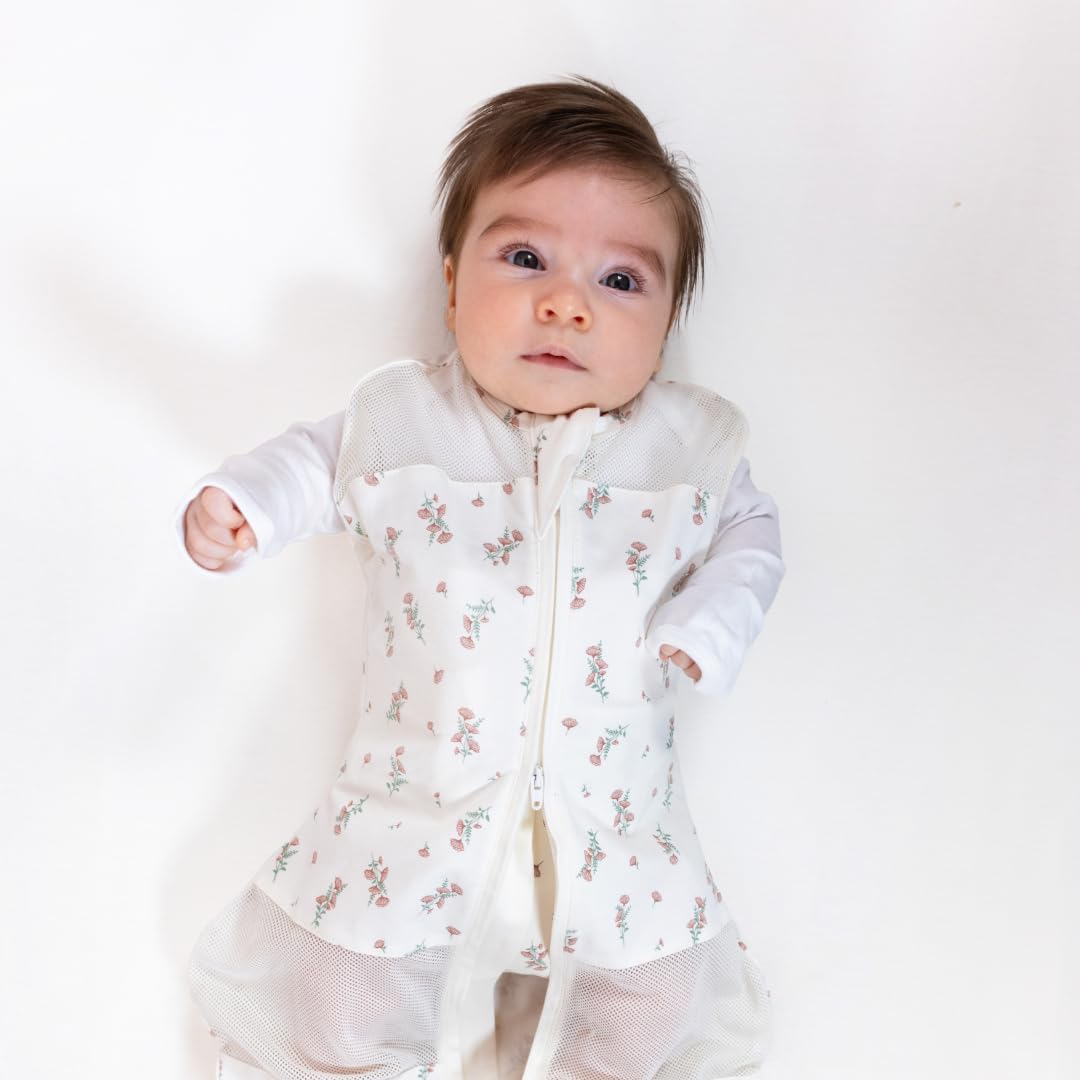 Happiest Baby Sleepea 5-Second Swaddle - 100% Organic Cotton Baby Swaddle Blanket - Doctor Designed Promotes Healthy Hip Development (Ivory Wildflowers, Medium)